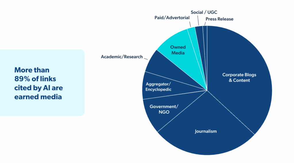 But AI isn’t just sourcing from your owned content; investing in your earned media strategy is essential to establishing the credibility and authority that generative AI cites.